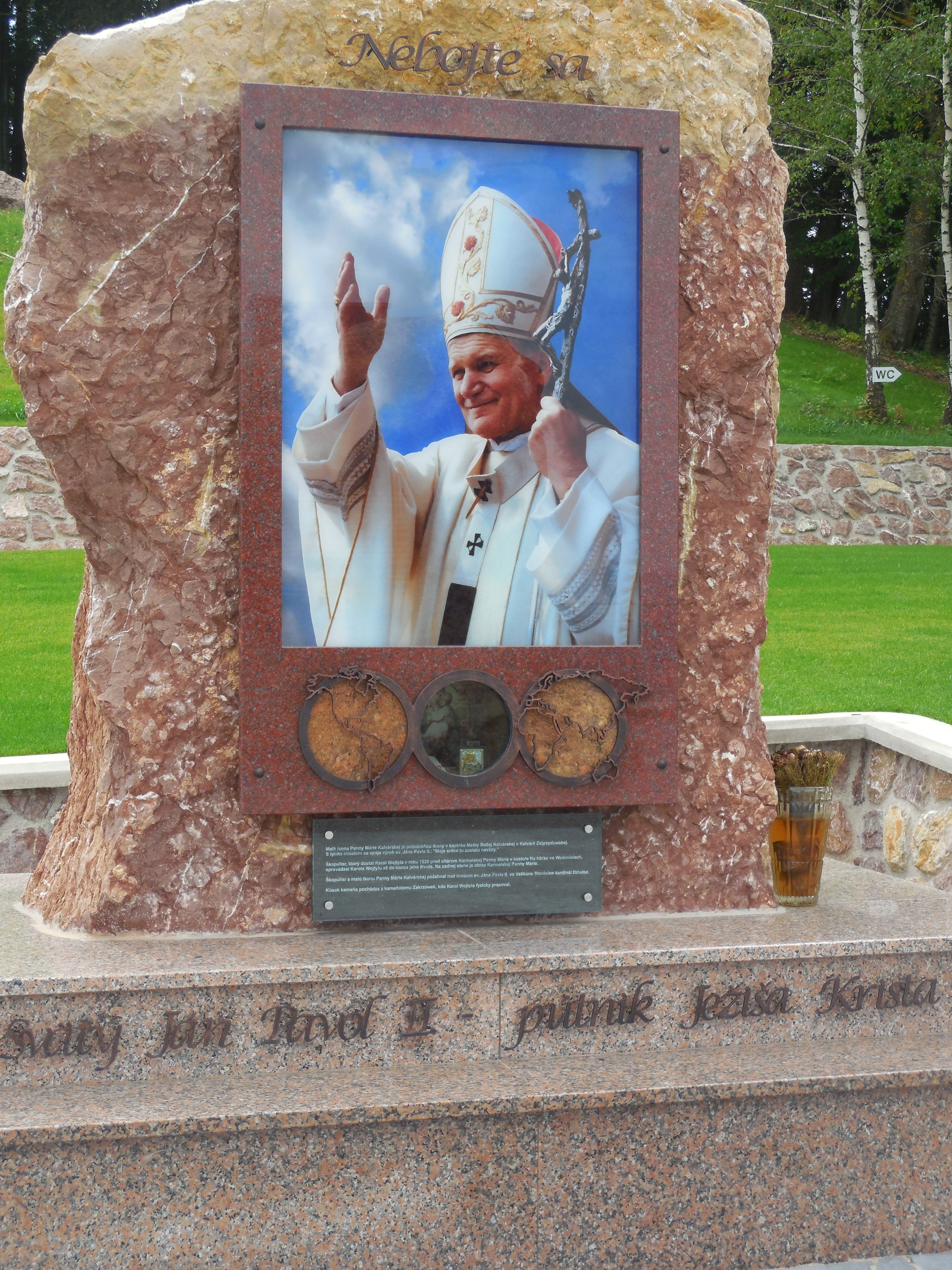 „Totus Tuus Mária... Totus Tuus Amen.“ sú ďalšie nápisy na dvoch veľkých kameňoch. Pred nimi v skale je obraz svätého pápeža Jána Pavla II.