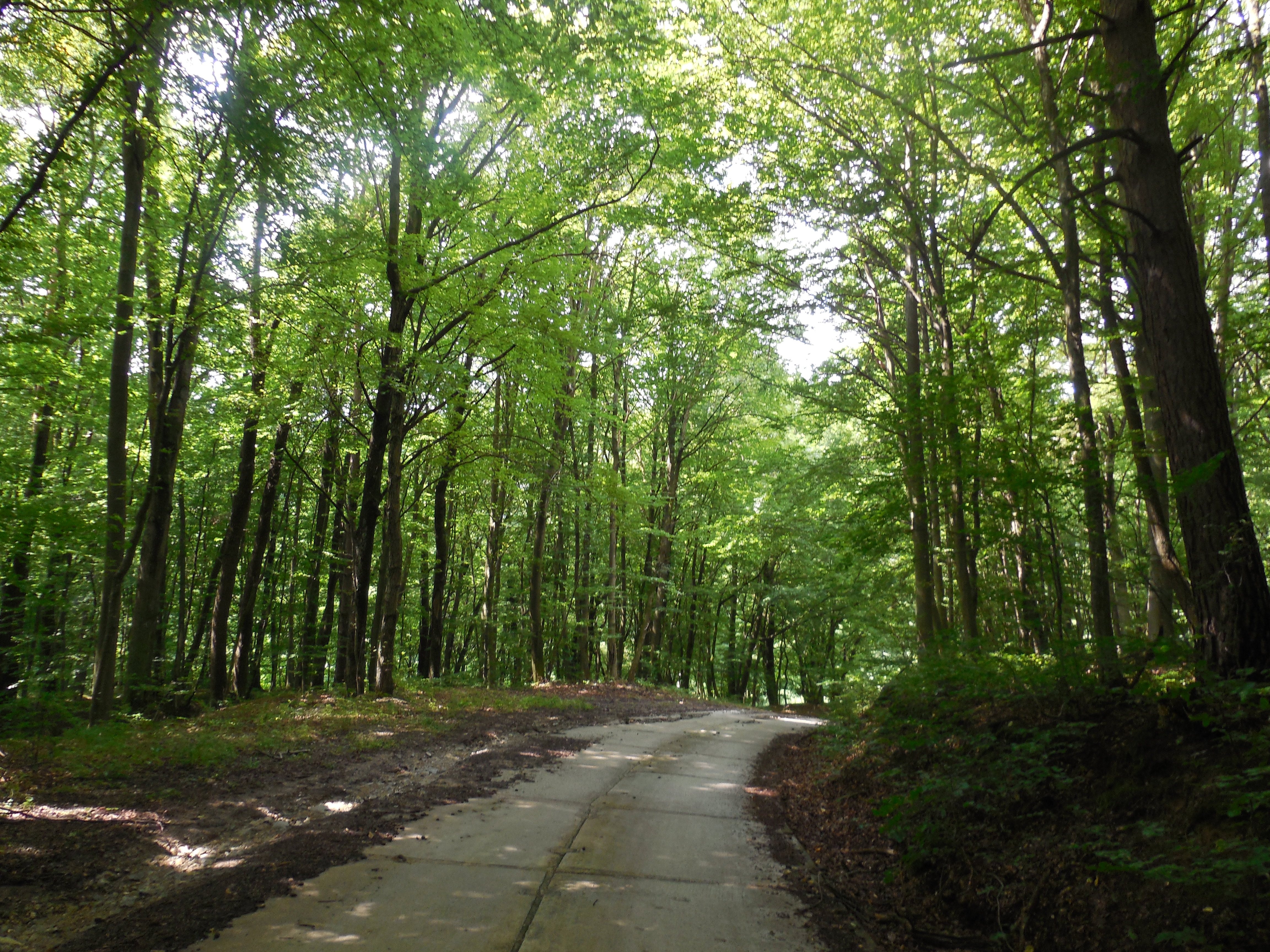 Popri asfaltovej ceste sa týčia mocné stromy...