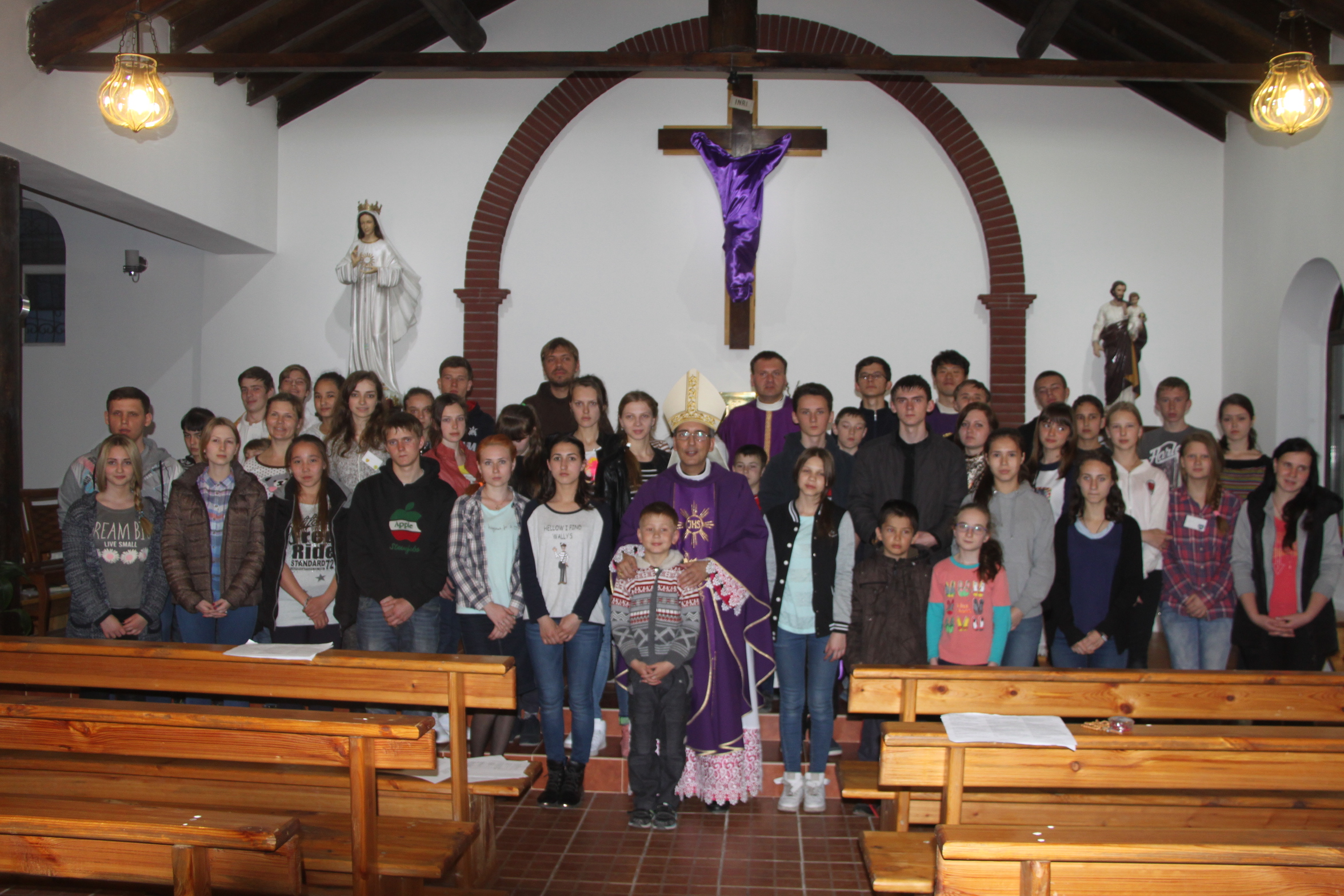 Na kvetnú nedeľu k nám prišiel otec biskup, tak sme mohli tento deň sláviť spoločne aj s ostatnými veriacim. Večer boli k nám pozvaní mladí veriaci z protestanských cirkvi. Piesňami i duchovným tancom, sme ukončili druhý deň stretnutia mládeže. | |