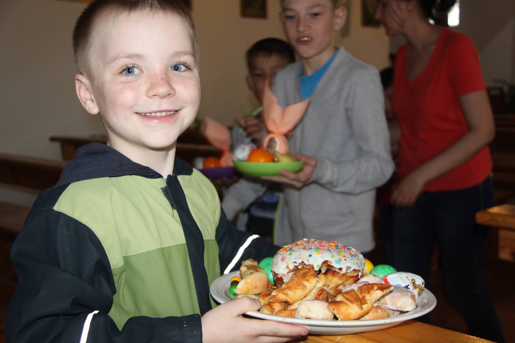 Duchovne posilnení sme pokračovali vo svojich farnostiach vo Veľkonočnom trojdní. Deti z očagov sa tiež zúčastňovali na liturgii týchto veľkých dní. Dima sa zvlášť tešil z posväcovania jedál. Toto bolo jeho prvé slávenie Veľkonočných sviatkov. | |