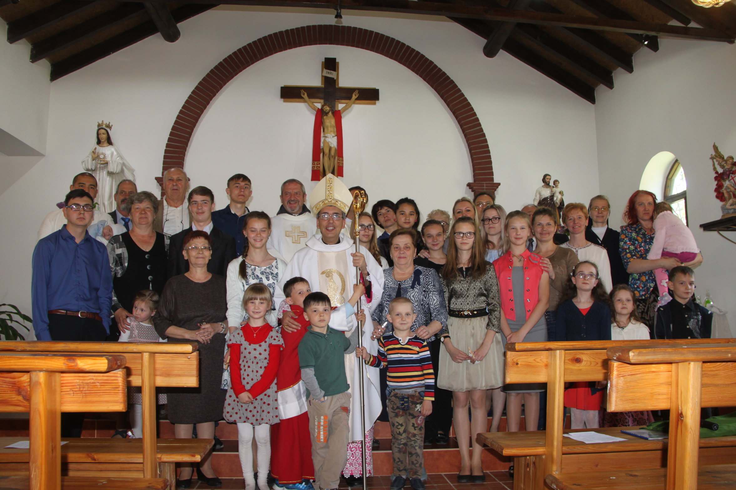 Na návštevu za deťmi prišli niekoľkí známi z Poľska, kde boli deti počas leta na prázdninách. Počas ich návštevy niektoré deti i farníci prijali sviatosť birmovania. Pre mnohých to bola veľká radosť, že sa im títo dobrí ľudia stali birmovnými rodičmi. | |