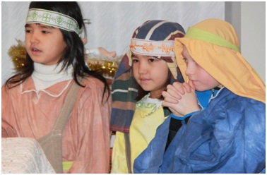 4. januára naše deti boli pozvané sestrami “Milosrdenstva” (sestry Matky Terezy) v Almate, aby zahrali scénku o narodení Ježiša pre iné deti. Po tejto scénke boli pre všetky prítomné deti pripravené a rozdané darčeky a tiež obed. Na druhý deň naše deti hrali scénku v dedinke Daulet, kam prišlo veľa ľudí s deťmi. Taktiež sme boli pozvaní so scénkou aj k otcovi biskupovi, ktorý mal pripravenú sladkú pozornosť pre každého “herca”. Po scénke nám povedal ešte zopár povzbudivých slov, spoločne sme sa pomodlili a zaspievali si.