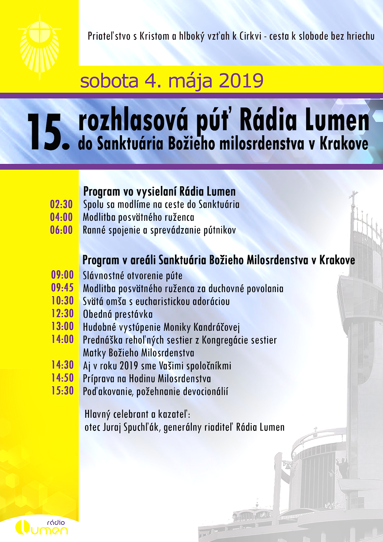 do Sanktuária Božieho Milosrdenstva v Krakove. Púť sa uskutoční v sobotu 4. mája 2019.