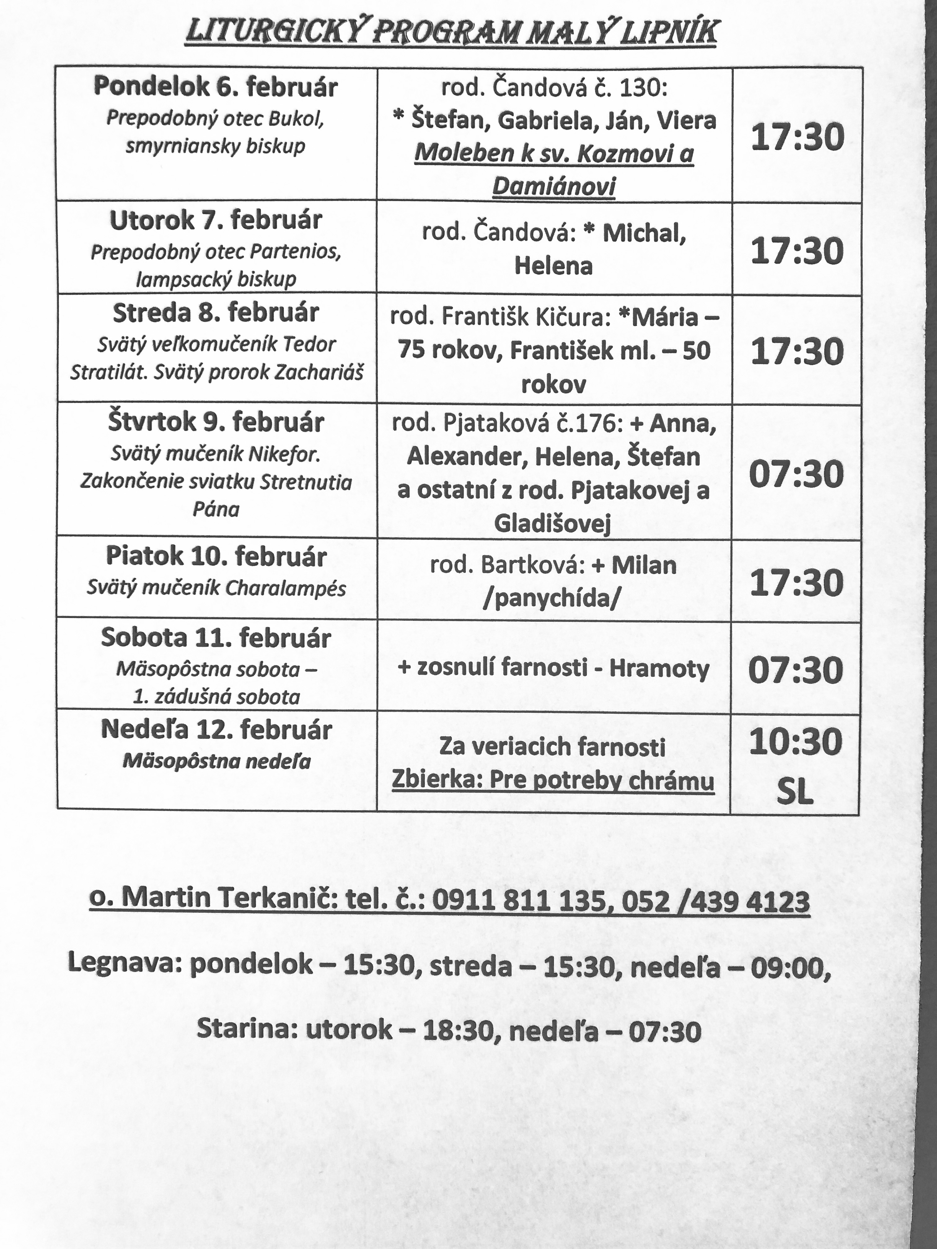 Liturgický program 06.02.-12.02.2023