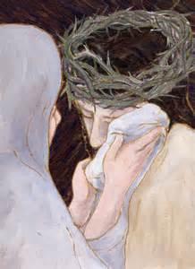 Na kríži chlieb, v ňom Slovo: "MILOVANÝM"