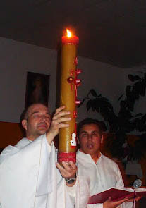 Naša sestra Vierka v tento večer bola pokrstená. Bol to pre nás všetkých silný zážitok. My ostatní sme si obnovili svoje krstné zasvätenie a pripomenuli sme si, že aj my sme boli pokrstení a sme Boží synovia a dcéry. Na záver liturgie vzkriesenia sme mali procesiu po kolónií, aby živý Eucharistický Kristus požehnal a svojou prítomnosťou posvatil miesto, kde žijeme.