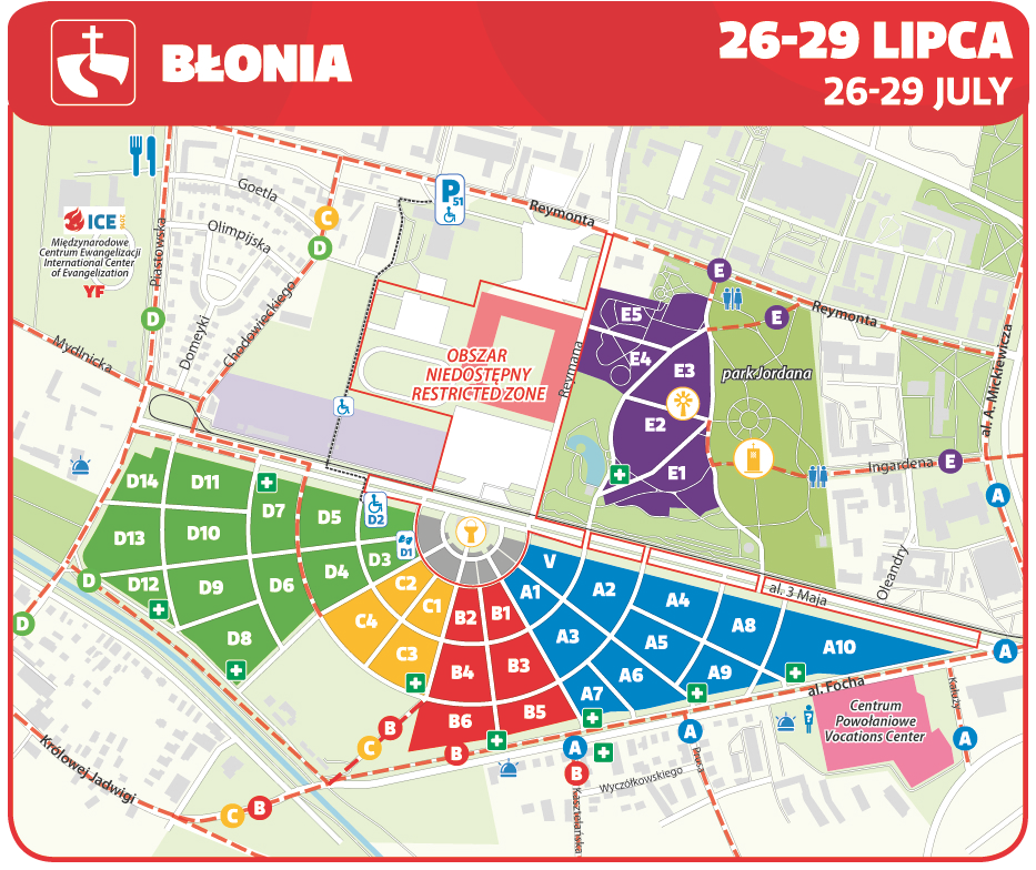 Prinášame mapy miest, na ktorých sa uskutoční hlavný program Svetových dní mládeže v Krakove.